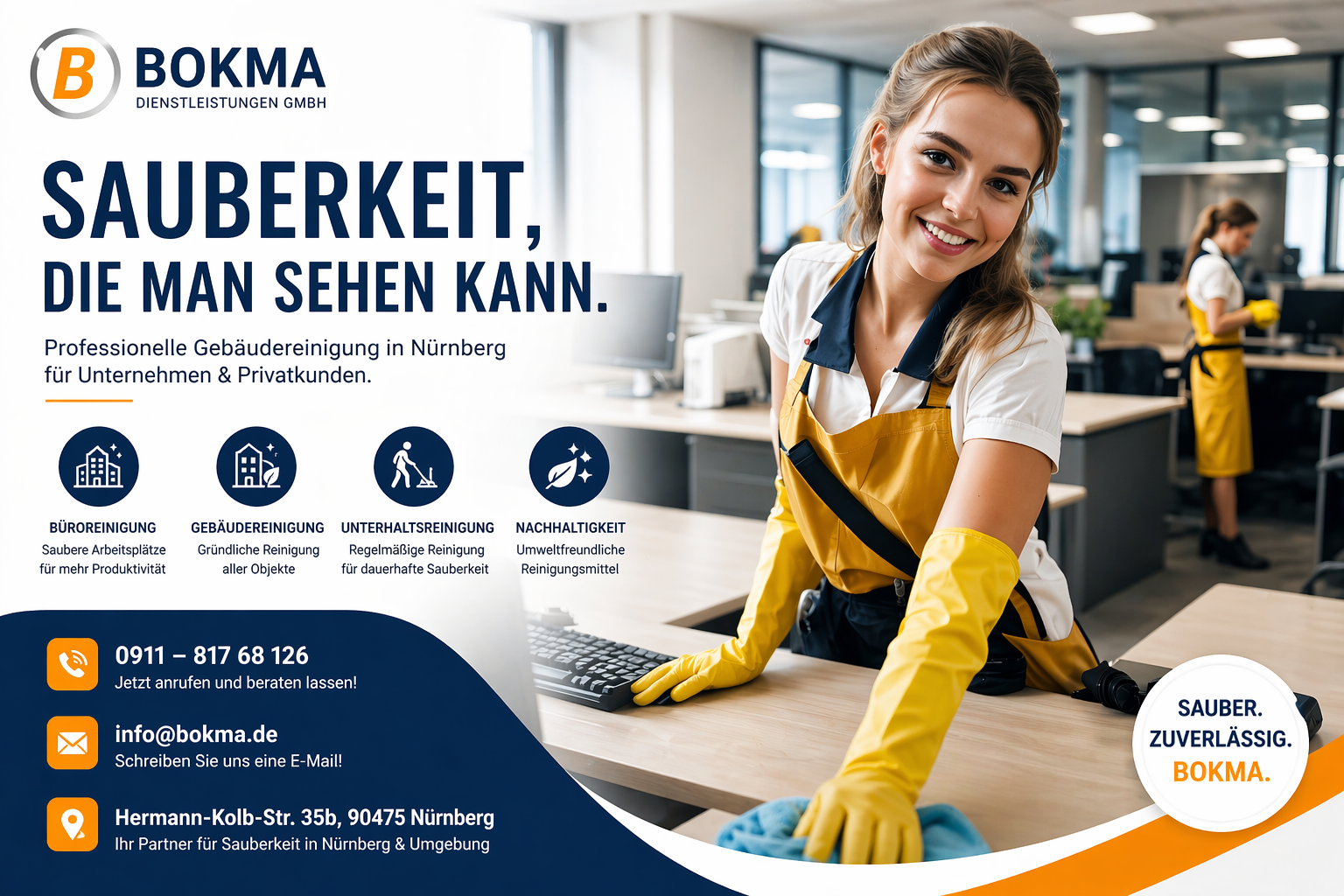 Ein sauberes Arbeitsumfeld ist kein Luxus – es ist die Grundlage für Produktivität, Gesundheit und einen starken ersten Eindruck. Genau hier setzt die Bokma Dienstleistungen GmbH an: Ihre zuverlässige Gebäudereinigung in Nürnberg und Umgebung.